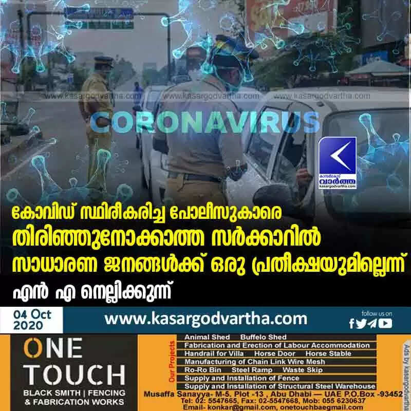 കോവിഡ് സ്ഥിരീകരിച്ച പോലീസുകാരെ തിരിഞ്ഞുനോക്കാത്ത സർക്കാറിൽ സാധാരണ ജനങ്ങൾക്ക് ഒരു പ്രതീക്ഷയുമില്ലെന്ന് എൻ എ നെല്ലിക്കുന്ന്