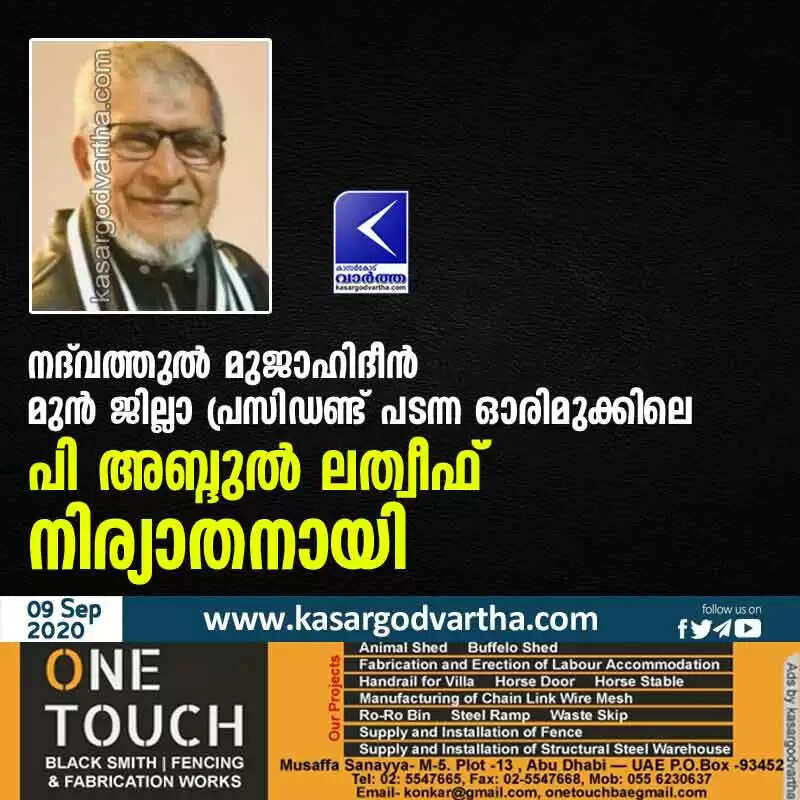 Keywords: Kasaragod, Padanna, Kerala, News, Death, Nadvathul Mujahidheen, Padanna orimukk P Abdul latheef passed away