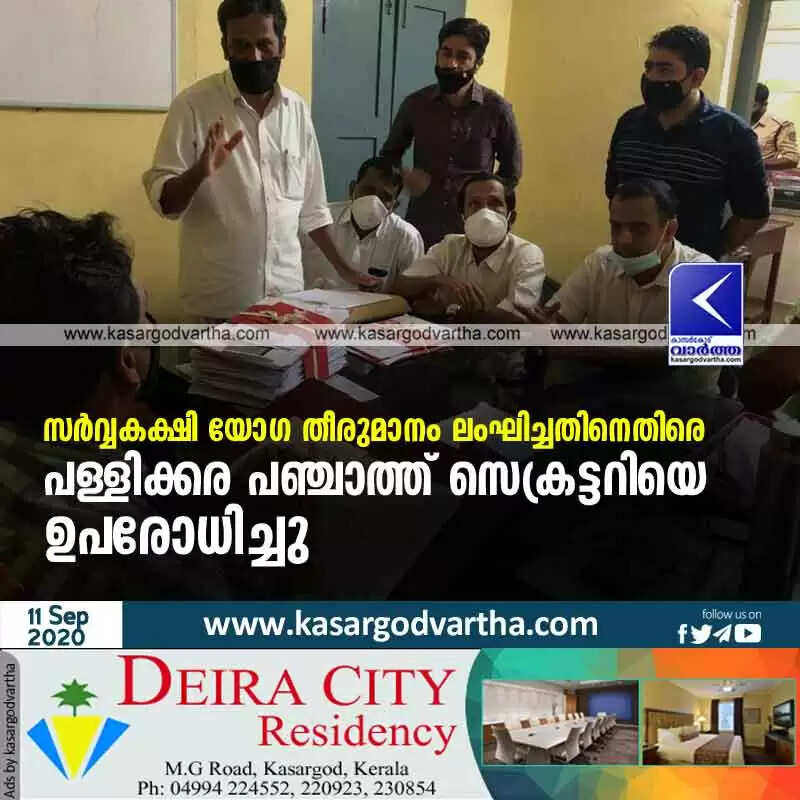 സർവ്വകക്ഷി യോഗ തീരുമാനം ലംഘിച്ചതിനെതിരെ പള്ളിക്കര പഞ്ചാത്ത് സെക്രട്ടറിയെ ഉപരോധിച്ചു