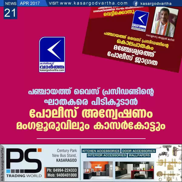 പഞ്ചായത്ത് വൈസ് പ്രസിഡണ്ടിന്റെ ഘാതകരെ പിടികൂടാന് പോലീസ് അന്വേഷണം മംഗളൂരുവിലും കാസര്കോട്ടും