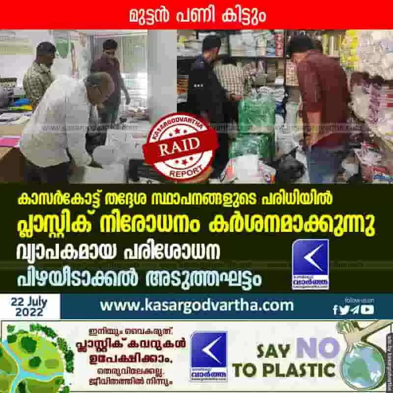 Keywords: Plastic ban is being tightened in shops, Kerala, Kasaragod, News, Top-Headlines, Plastic, Prohibition of wastage, Mangalpady, Panchayath, Central Government, Raid.