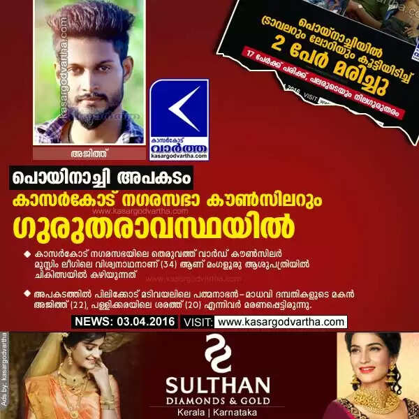 പൊയിനാച്ചി അപകടം; കാസര്‍കോട് നഗരസഭാ കൗണ്‍സിലറും ഗുരുതരാവസ്ഥയില്‍