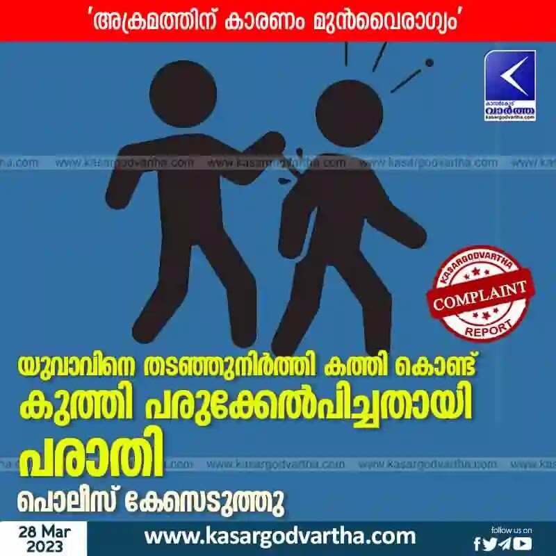 Police booked | യുവാവിനെ തടഞ്ഞുനിർത്തി കത്തി കൊണ്ട് കുത്തി പരുക്കേൽപിച്ചതായി പരാതി; പൊലീസ് കേസെടുത്തു