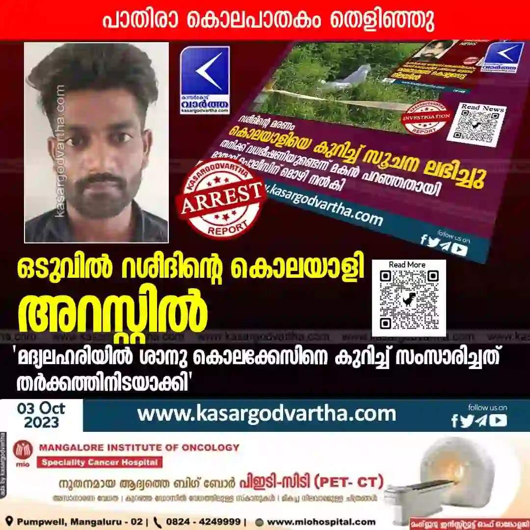 Arrested | ഒടുവില്‍ റശീദിന്റെ കൊലയാളി അറസ്റ്റില്‍; 'മദ്യലഹരിയില്‍ ശാനു കൊലക്കേസിനെ കുറിച്ച് സംസാരിച്ചത് തര്‍ക്കത്തിനിടയാക്കി'