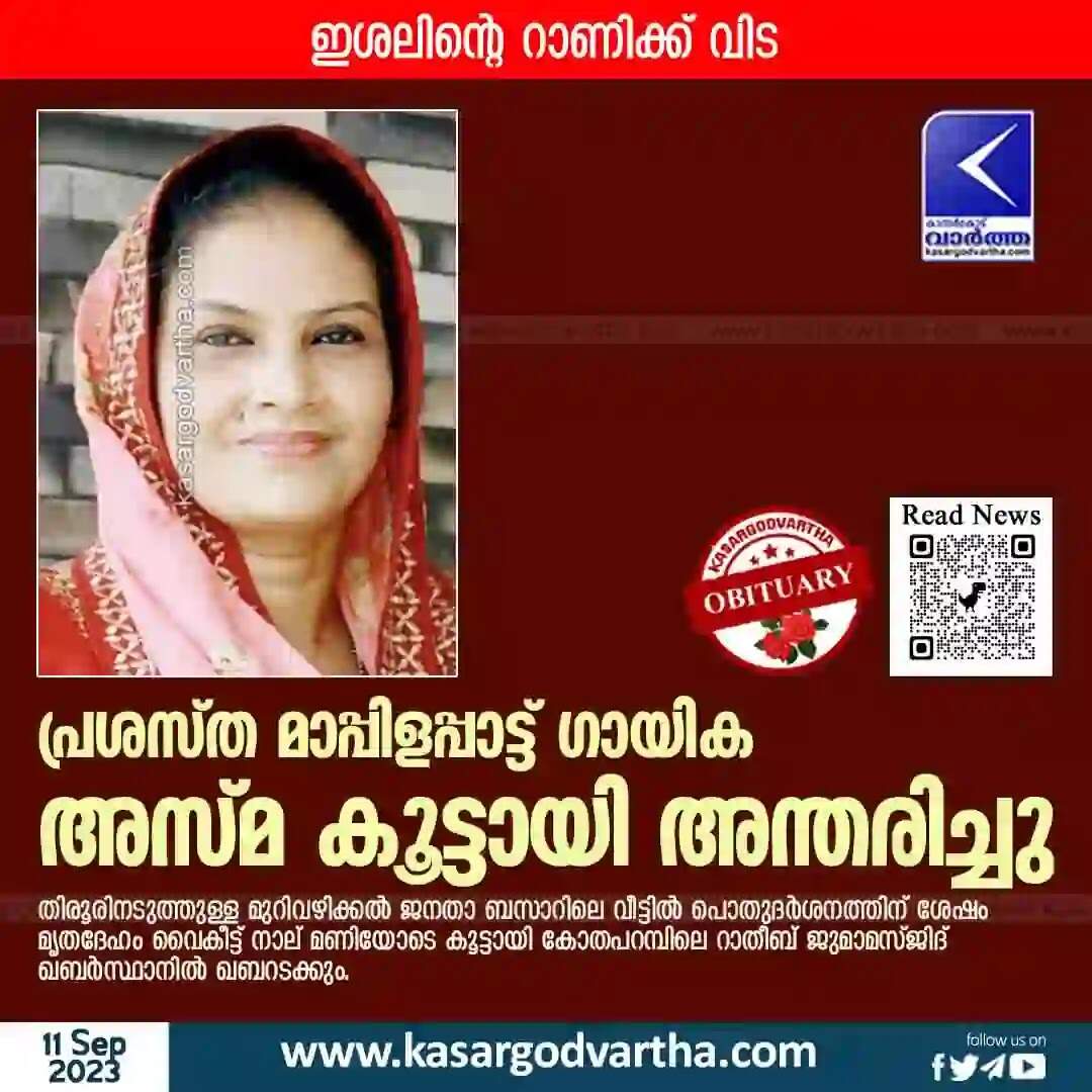 Obituary | പ്രശസ്ത മാപ്പിളപ്പാട്ട് ഗായിക അസ്മ കൂട്ടായി അന്തരിച്ചു