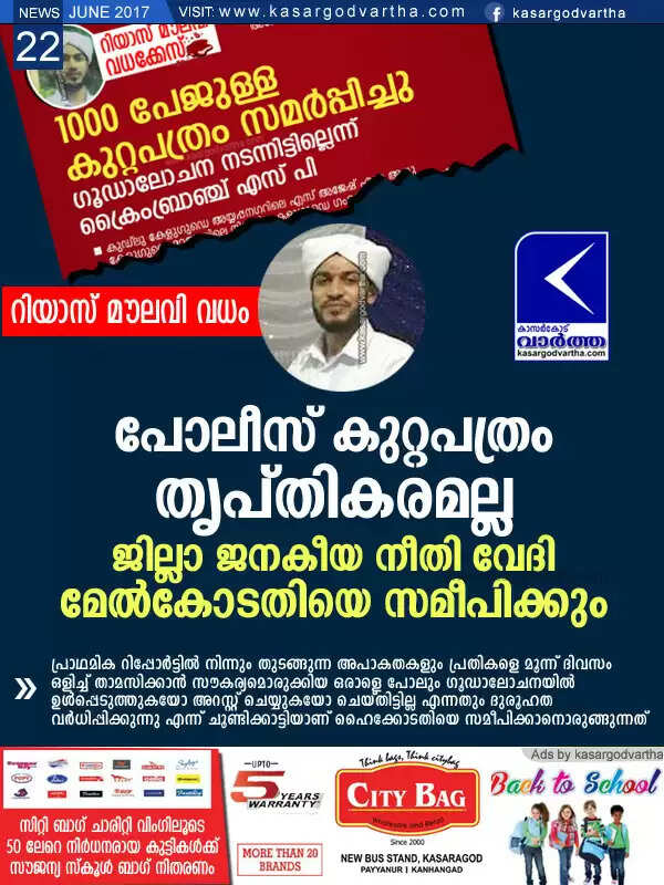 Keywords: Kerala, kasaragod, news, Murder-attempt, Choori, High-Court, Report, Investigation, Riyas Moulavi murder case: Charge sheet not satisfied