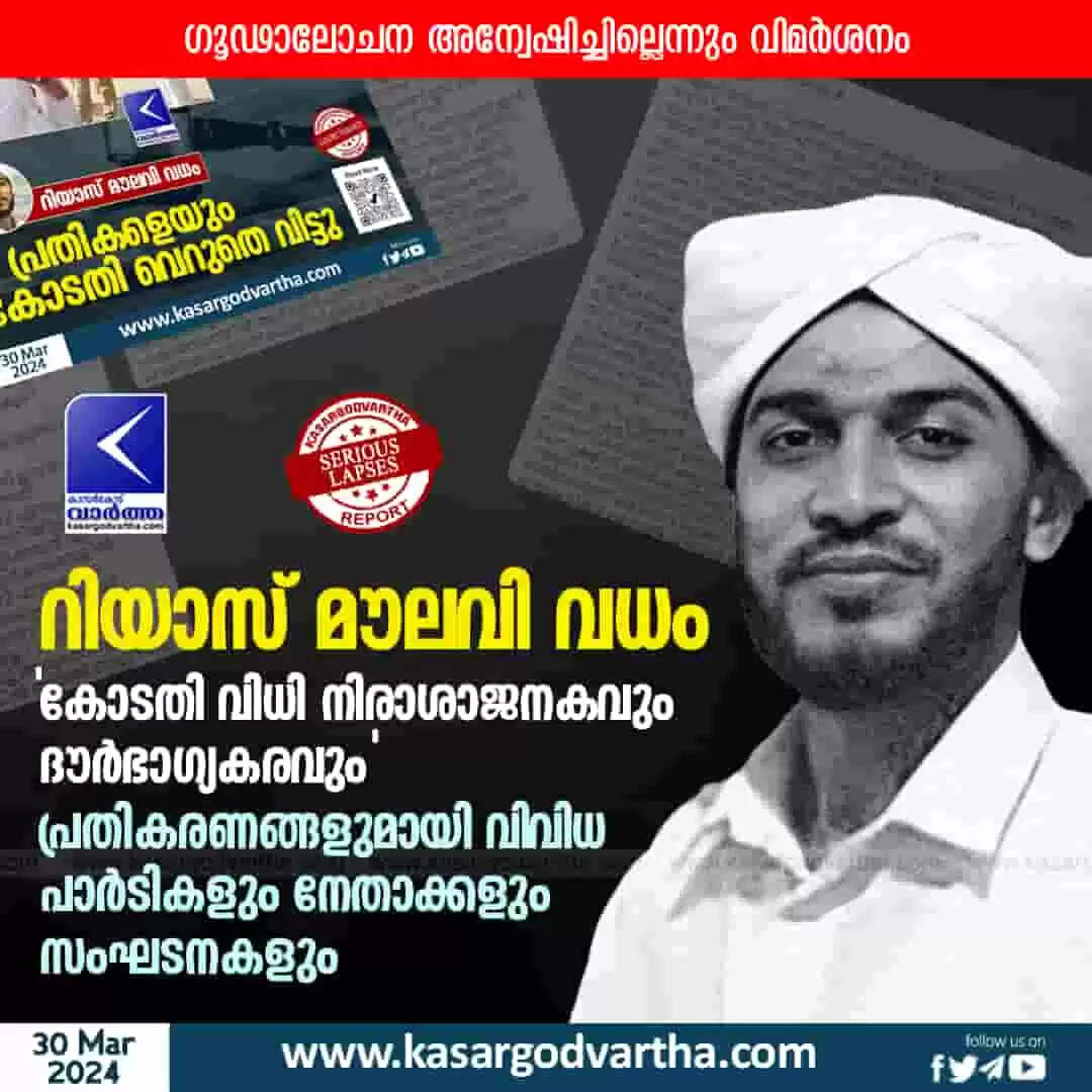 Keywords: News, Top-Headlines, Kasargod, Kasaragod-News, Kerala, Kerala-News, Riyaz Moulavi murder: Various parties, leaders and organizations about on court verdict.