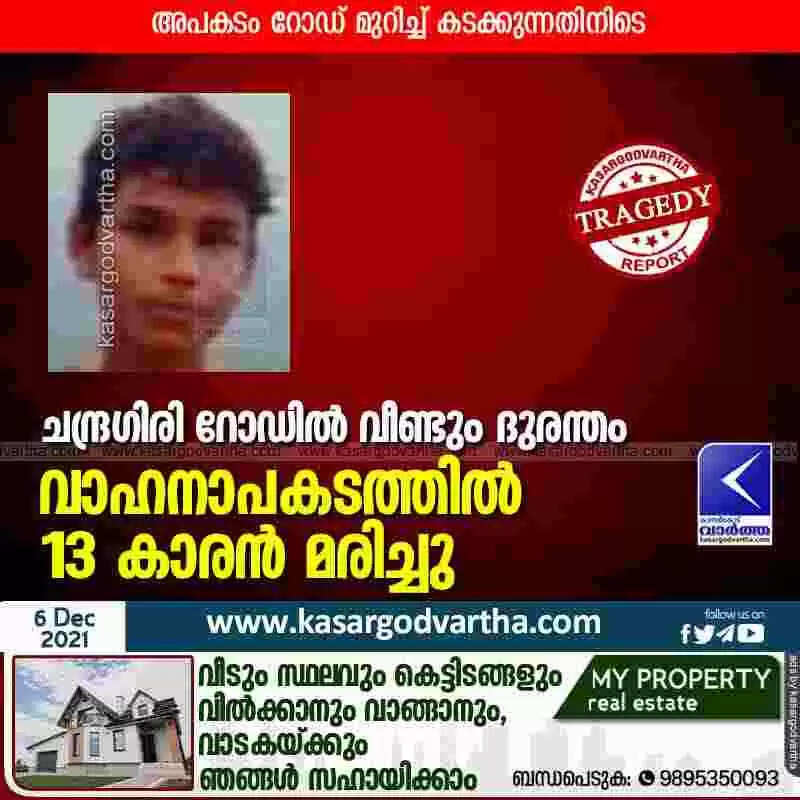 ചന്ദ്രഗിരി റോഡിൽ വീണ്ടും ദുരന്തം; വാഹനാപകടത്തിൽ 13 കാരൻ മരിച്ചു