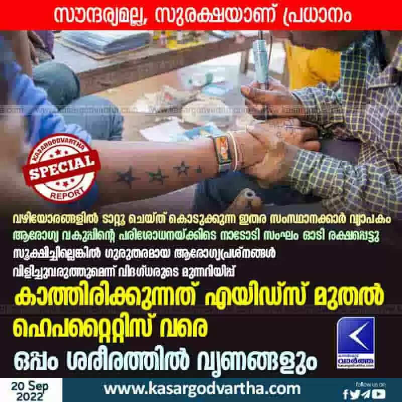 Keywords: Latest-News, Kerala, Kasaragod, Top-Headlines, Health, Health-Department, Treatment, AIDS, ALERT, Tattoo, Health Problems, Roadside Tattoos, Roadside tattoos can cause health problems.