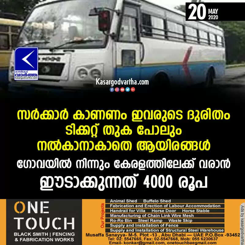 സർക്കാർ കാണണം ഇവരുടെ ദുരിതം, ടിക്കറ്റ് തുക പോലും നല്‍കാനാകാതെ ആയിരങ്ങൾ, ഗോവയിൽ നിന്നും കേരളത്തിലേക്ക് വരാൻ ഈടാക്കുന്നത് 4000 രൂപ