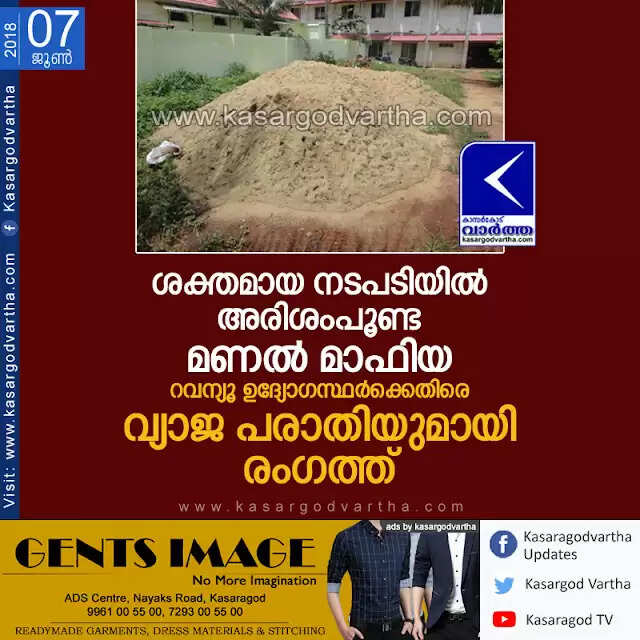 Keywords:  Kasaragod, Kerala, news, Kanhangad, sand mafia, Hosdurg, Sand mafia's fake complaint against Revenue officers.