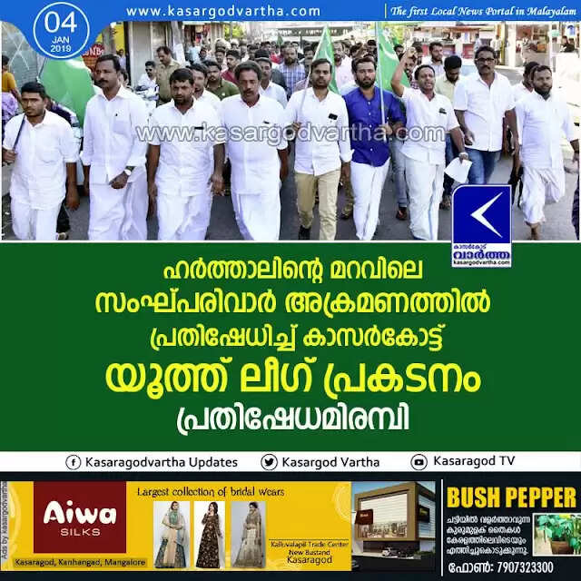 ഹര്‍ത്താലിന്റെ മറവിലെ സംഘ്പരിവാര്‍ ആക്രമണത്തില്‍ പ്രതിഷേധിച്ച് കാസര്‍കോട്ട് യൂത്ത് ലീഗ് പ്രകടനം; പ്രതിഷേധമിരമ്പി