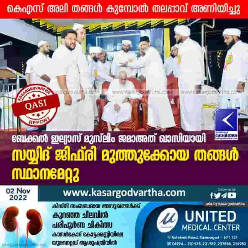 Qazi | ബേക്കൽ ഇല്യാസ് മുസ്ലിം ജമാഅത് ഖാസിയായി സയ്യിദ് ജിഫ്രി മുത്തുക്കോയ തങ്ങൾ സ്ഥാനമേറ്റു