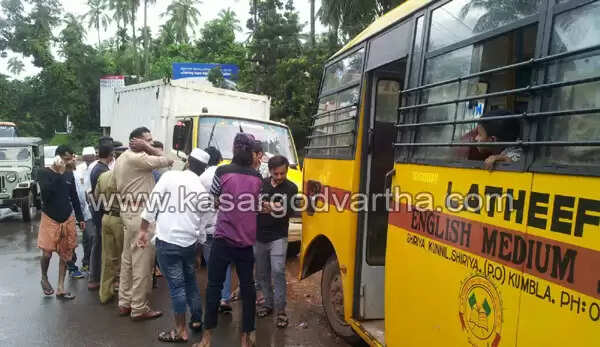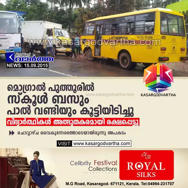 Keywords : Accident, School Bus, Students, Kasaragod, Kerala, Mogral Puthoor, Milk Vehicle.