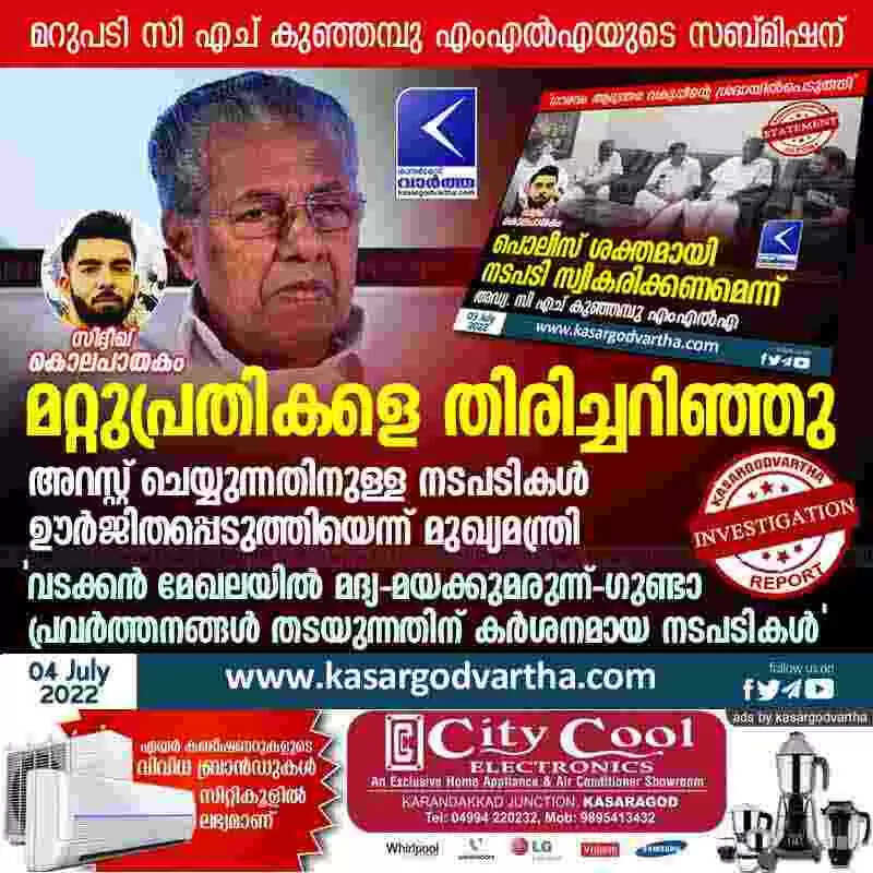 Keywords: Thiruvananthapuram, Kasaragod, Kerala, News, Top-Headlines, Murder-case, Murder, Accuse, Arrest, Pinarayi-Vijayan, Police, Investigation, Paivalika, DYSP, Drugs, Siddique's murder: Chief Minister says other accused identified and steps taken to arrest them. < !- START disable copy paste -->