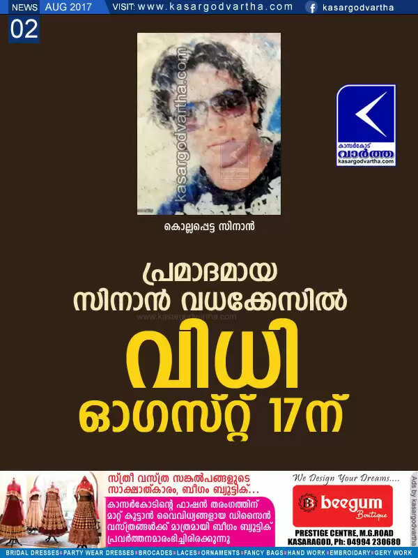 പ്രമാദമായ സിനാന് വധക്കേസില് വിധി ഓഗസ്റ്റ് 17ന്