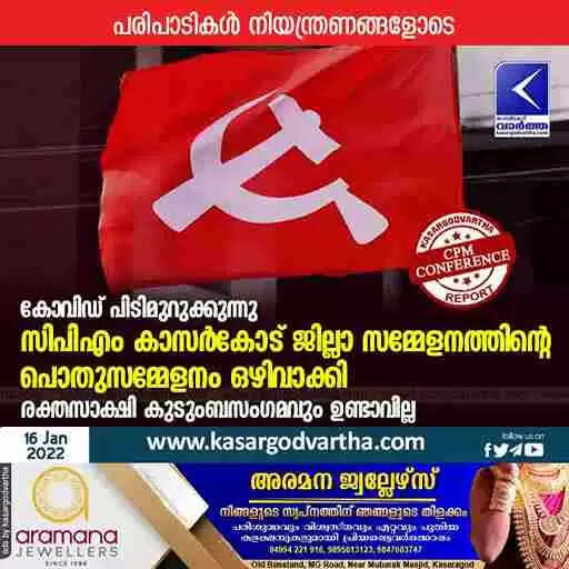 കോവിഡ് പിടിമുറുക്കുന്നു; സിപിഎം കാസർകോട് ജില്ലാ സമ്മേളനത്തിന്റെ പൊതുസമ്മേളനം ഒഴിവാക്കി; രക്തസാക്ഷി കുടുംബസംഗമവും ഉണ്ടാവില്ല