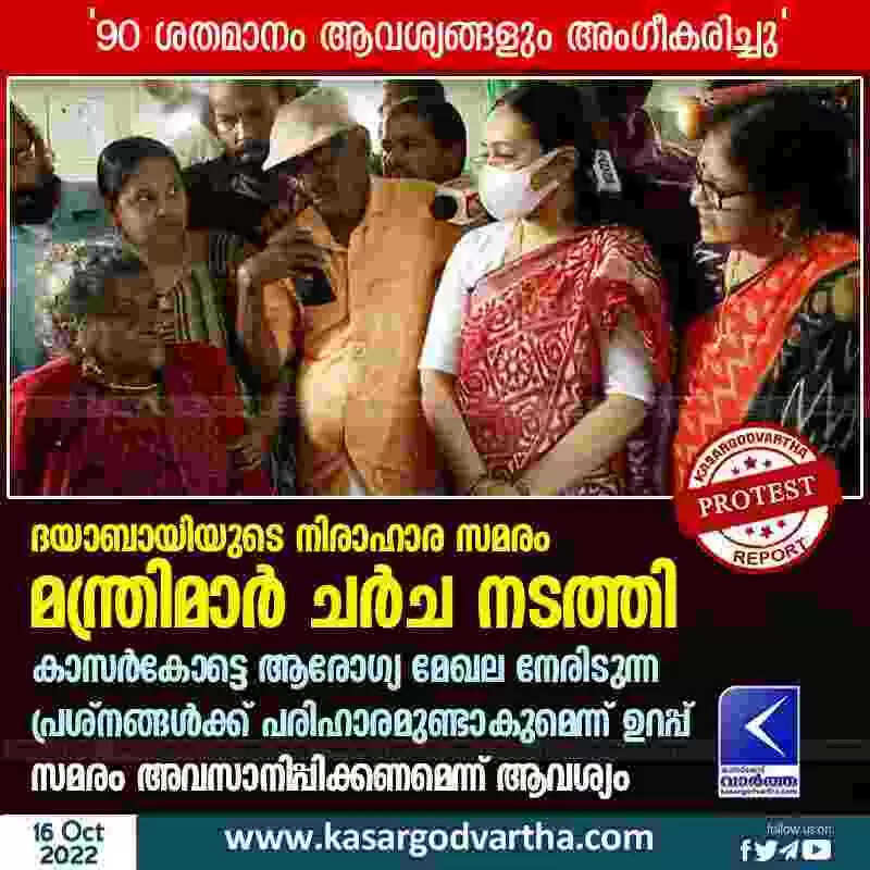 Keywords: Thiruvananthapuram, Kerala, News, Top-Headlines, Latest-News, Minister, Health-Department, Health-minister Minister, Pinarayi-Vijayan, Kanhangad, Social activist Daya Bai will stop hunger strike. < !- START disable copy paste -->