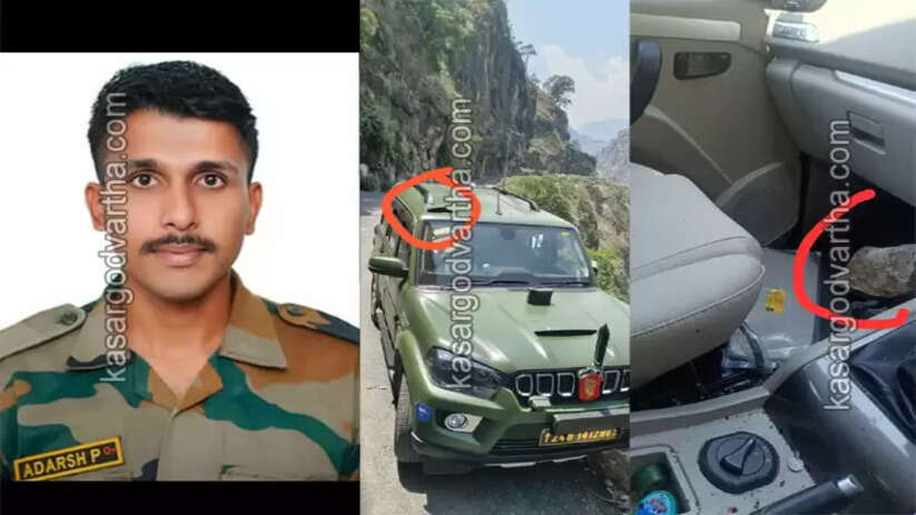 കരസേന 426 ഇന്ഡിപെന്ഡന്റ് എന്ജിനീയറിങ് കംപനിയില് സൈനികനാണ് ആദര്ശ്. ജോലിയുടെ ഭാഗമായി ജാക്രി ട്രാന്സിസ്റ്റ് കാംപില് നിന്നും യൂണിറ്റ് ലൊകേഷനിലേക്ക് യാത്ര ചെയ്യുമ്പോള് മണ്ണിടിച്ചിലിനെ തുടര്ന്ന് സഞ്ചരിച്ച വാഹനത്തിന് മുകളിലേക്ക് മലമുകളില് നിന്ന് വലിയ പാറക്കല്ല് പതിക്കുകയായിരുന്നുവെന്നാണ് വിവരം.