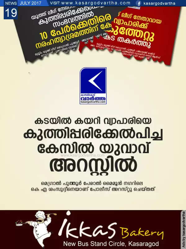 Keywords:  Kasaragod, Kerala, news, Top-Headlines, Youth, case, Police, Stabbing case; Youth arrested