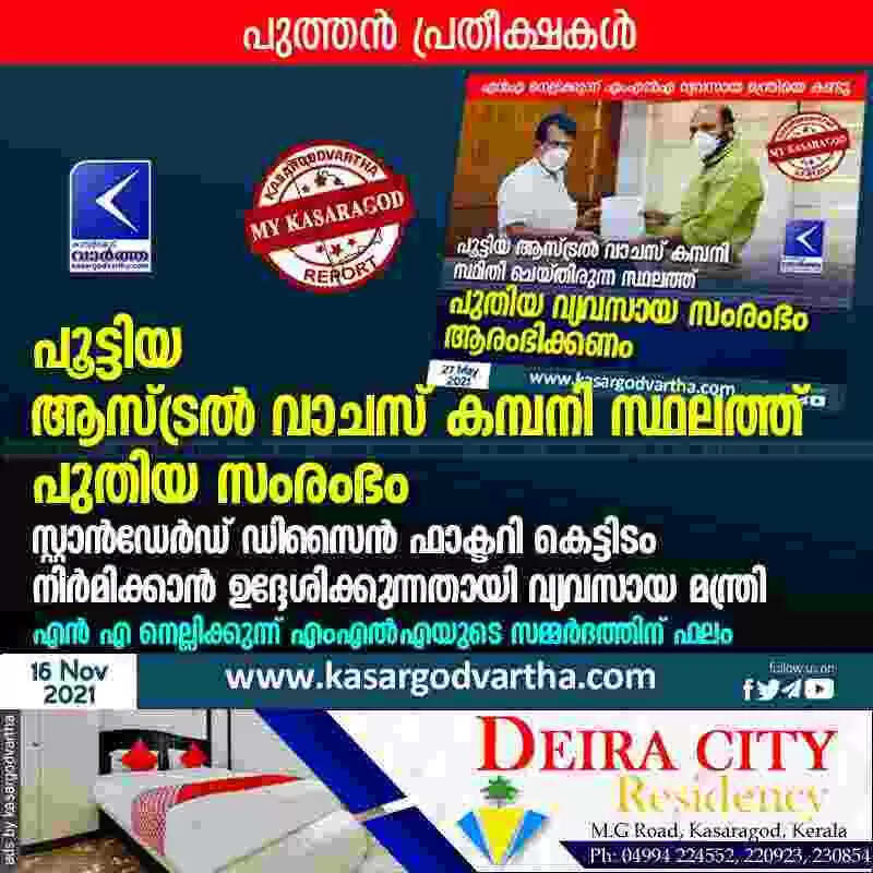 Keywords: Kasaragod, Kerala, News, Top-Headlines, Astral-Watch-Company, Minister, N.A.Nellikunnu, MLA, Starts new business venture on the site of closed Astral Watches Company.