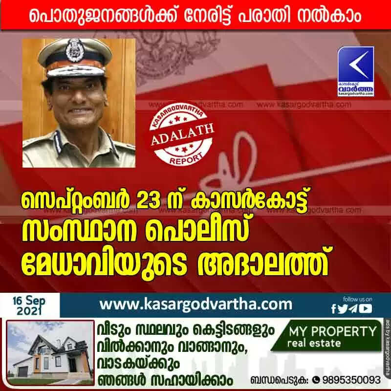 Keywords: Kerala, Kasaragod, News, Complaint, Police, Adalath, Visit, Top-Headlines, State police chief to visit Kasargod on September 23.
