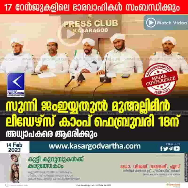Keywords: Latest-News, Kerala, Kasaragod, Top-Headlines, Press Meet, SSF, Sunni, Sunni Jamiyyathul Mu'alimeen Leaders Camp on February 18.