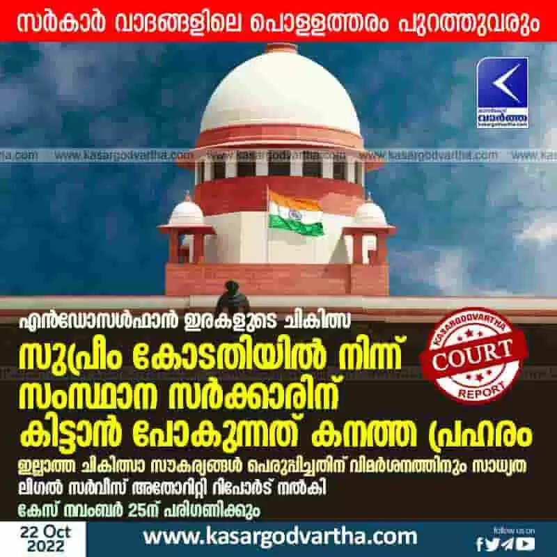 Supreme Court | എന്‍ഡോസള്‍ഫാന്‍ ഇരകളുടെ ചികിത്സ: സുപ്രീം കോടതിയില്‍ നിന്ന് സംസ്ഥാന സര്‍ക്കാരിന് കിട്ടാന്‍ പോകുന്നത് കനത്ത പ്രഹരം; ഇല്ലാത്ത ചികിത്സാ സൗകര്യങ്ങള്‍ പെരുപ്പിച്ചതിന് വിമര്‍ശനത്തിനും സാധ്യത; ലീഗല്‍ സര്‍വീസ് അതോറിറ്റി റിപോര്‍ട് നല്‍കി; കേസ് നവംബര്‍ 25ന് പരിഗണിക്കും