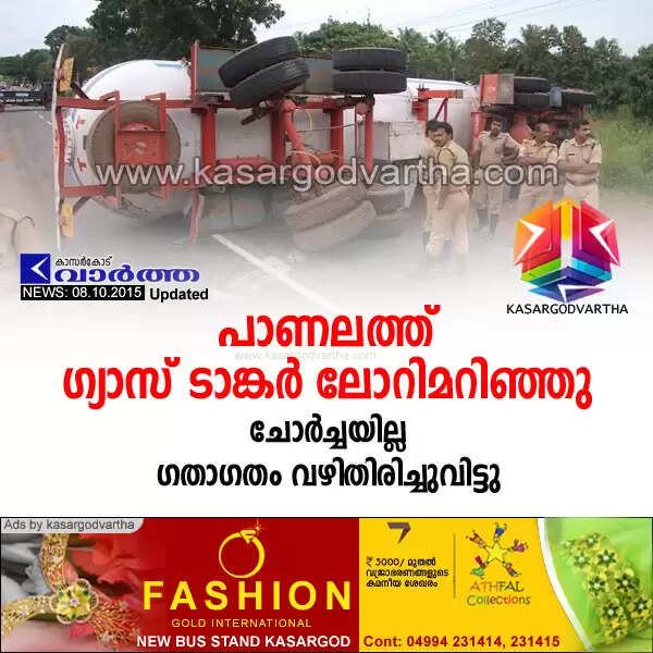 പാണലത്ത് ഗ്യാസ് ടാങ്കര് ലോറിമറിഞ്ഞു; ചോര്ച്ചയില്ല, ഗതാഗതം വഴിതിരിച്ചുവിട്ടു