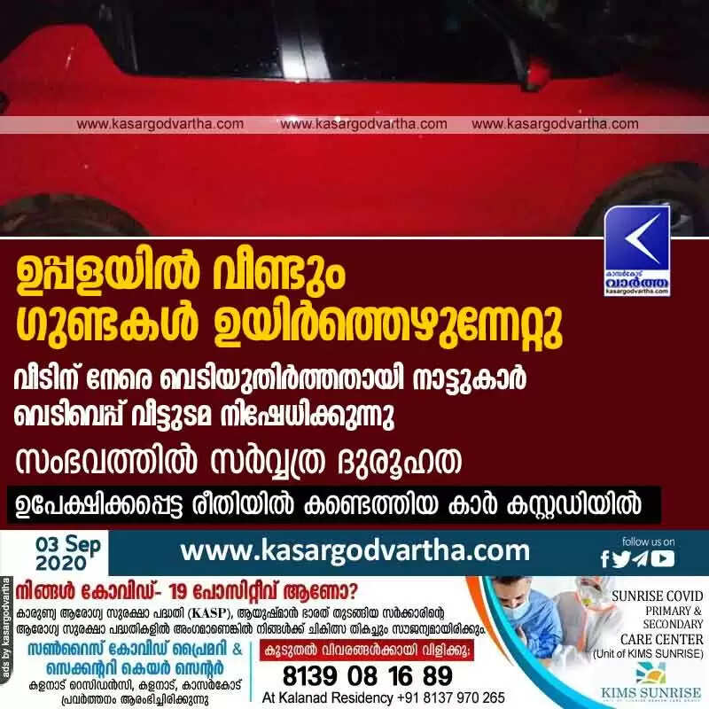 ഉപ്പളയില്‍ വീണ്ടും ഗുണ്ടകൾ ഉയർത്തെഴുന്നേറ്റു; വീടിന് നേരെ വെടിയുതിര്‍ത്തതായി നാട്ടുകാർ, വെടിവെപ്പ് വീട്ടുടമ നിഷേധിക്കുന്നു; സംഭവത്തിൽ സർവ്വത്ര ദുരൂഹത, ഉപേക്ഷിക്കപ്പെട്ട രീതിയിൽ കണ്ടെത്തിയ കാർ കസ്റ്റഡിയിൽ