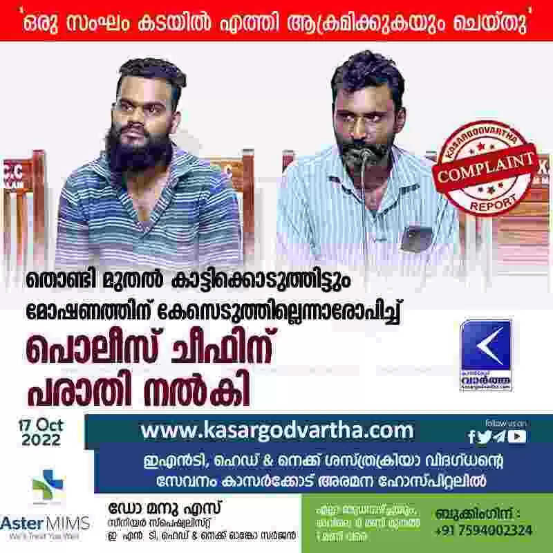 Complaint | തൊണ്ടി മുതല് കാട്ടിക്കൊടുത്തിട്ടും മോഷണത്തിന് കേസെടുത്തില്ലെന്നാരോപിച്ച് പൊലീസ് ചീഫിന് പരാതി നല്കി