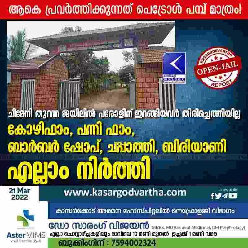 Keywords: Kasaragod, Kerala, News, Top-Headlines, Jail, Farming, Shop, Food, Petrol-Pump, COVID-19, Court, Court-Order,Cash, Those who were released on parole at the Cheemaney Open Jail did not return. < !- START disable copy paste -->