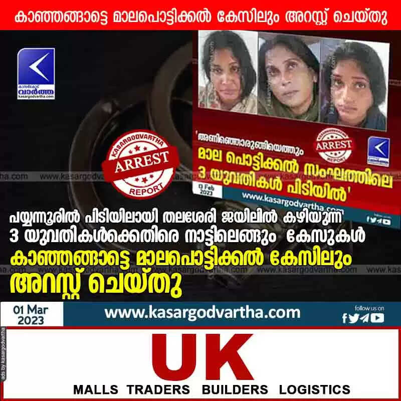 Arrested | പയ്യന്നൂരിൽ പിടിയിലായി തലശേരി ജയിലിൽ കഴിയുന്ന 3 യുവതികൾക്കെതിരെ നാട്ടിലെങ്ങും കേസുകൾ; കാഞ്ഞങ്ങാട്ടെ മാലപൊട്ടിക്കൽ കേസിലും അറസ്റ്റ് ചെയ്തു