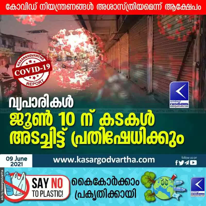 വ്യപാരികൾ ജൂൺ 10 ന് കടകൾ അടച്ചിട്ട് പ്രതിഷേധിക്കും; കോവിഡ് നിയന്ത്രണങ്ങൾ അശാസ്ത്രിയമെന്ന് ആക്ഷേപം