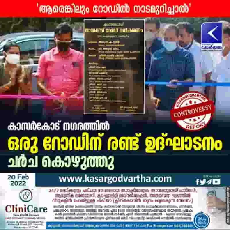 കാസർകോട് നഗരത്തിൽ ഒരു റോഡിന് രണ്ട് ഉദ്ഘാടനം; ചർച കൊഴുത്തു