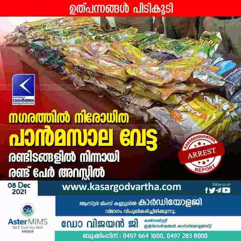 Keywords: Kasaragod, Kerala, News, Police, Investigation, Arrest, Pan, Ban, Police-station, Police-raid, Two people arrested with banned pan masala products.