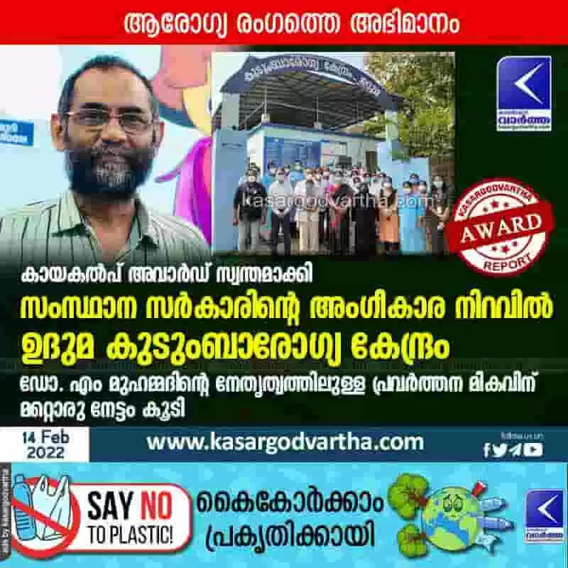 Keywords: News, Kerala, Kasaragod, Uduma, Health, Award, State, District, Government, Family Health Center, Kayakalp Award, Uduma Family Health Center won Kayakalp Award.