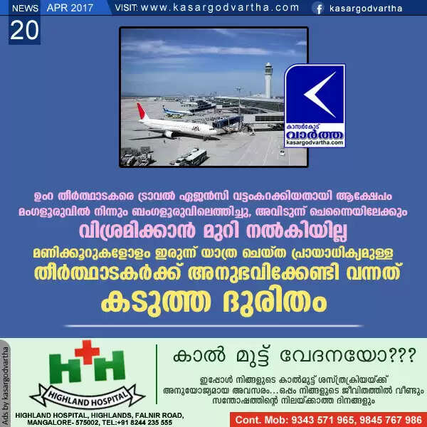 Keywords: Kasaragod, Bus, Food, Complaint, Airport, Umrah pilgrims, Travel agency, Room, Miserable journey, Ticket, Mangaluru,    Umrah travelers cheated by Agency.
