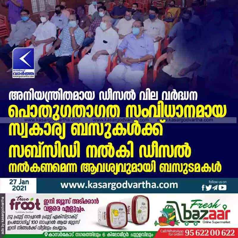 Keywords: Kerala, News, Kasaragod, Kanhangad, Bus, Employees, Bus Owners Association, Meet, Top-Headlines, Uncontrolled diesel price hike; Bus owners demand subsidized diesel for private buses.< !- START disable copy paste -->