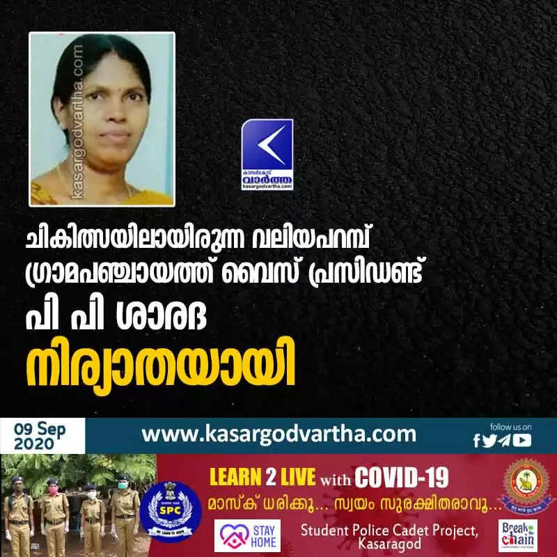 Keywords: Kasaragod, Kerala, Death, Panchayath, news, Treatment, president, Congress, Valiyaparambu Grama Panchayath Vice President PP Sharada, who was undergoing treatment, has passed away
