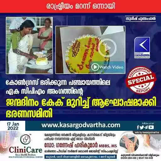 കോൺഗ്രസ് ഭരിക്കുന്ന പഞ്ചായത്തിലെ ഏക സിപിഎം അംഗത്തിന്റെ ജന്മദിനം കേക് മുറിച്ച് ആഘോഷമാക്കി ഭരണസമിതി