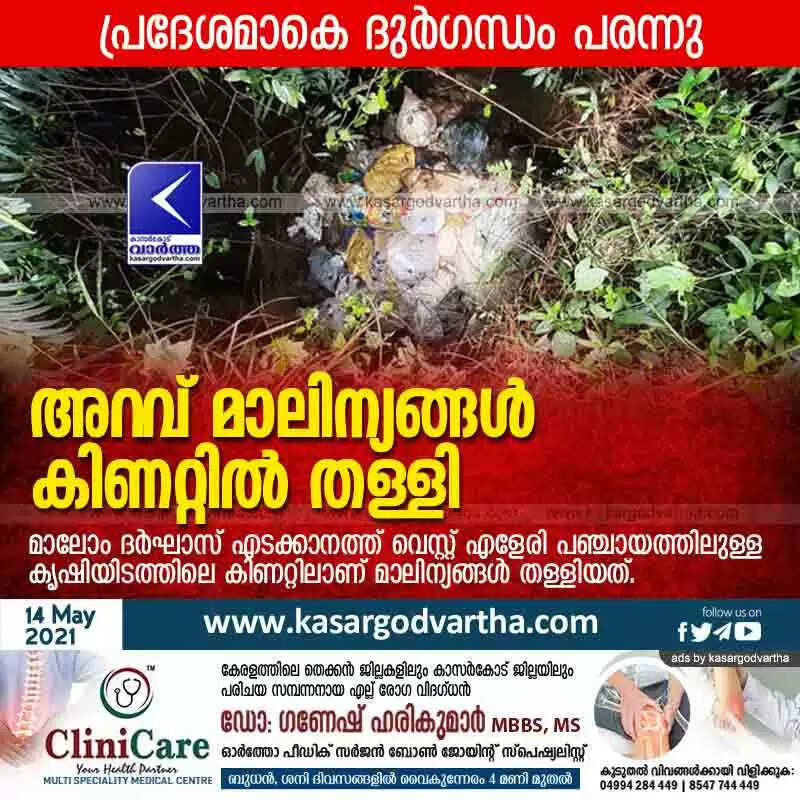 Keywords: Waste dump, Waste, Well, Kasaragod, Malayalam, Kerala, News, Police, Vellarikundu, Waste dumped into well.
