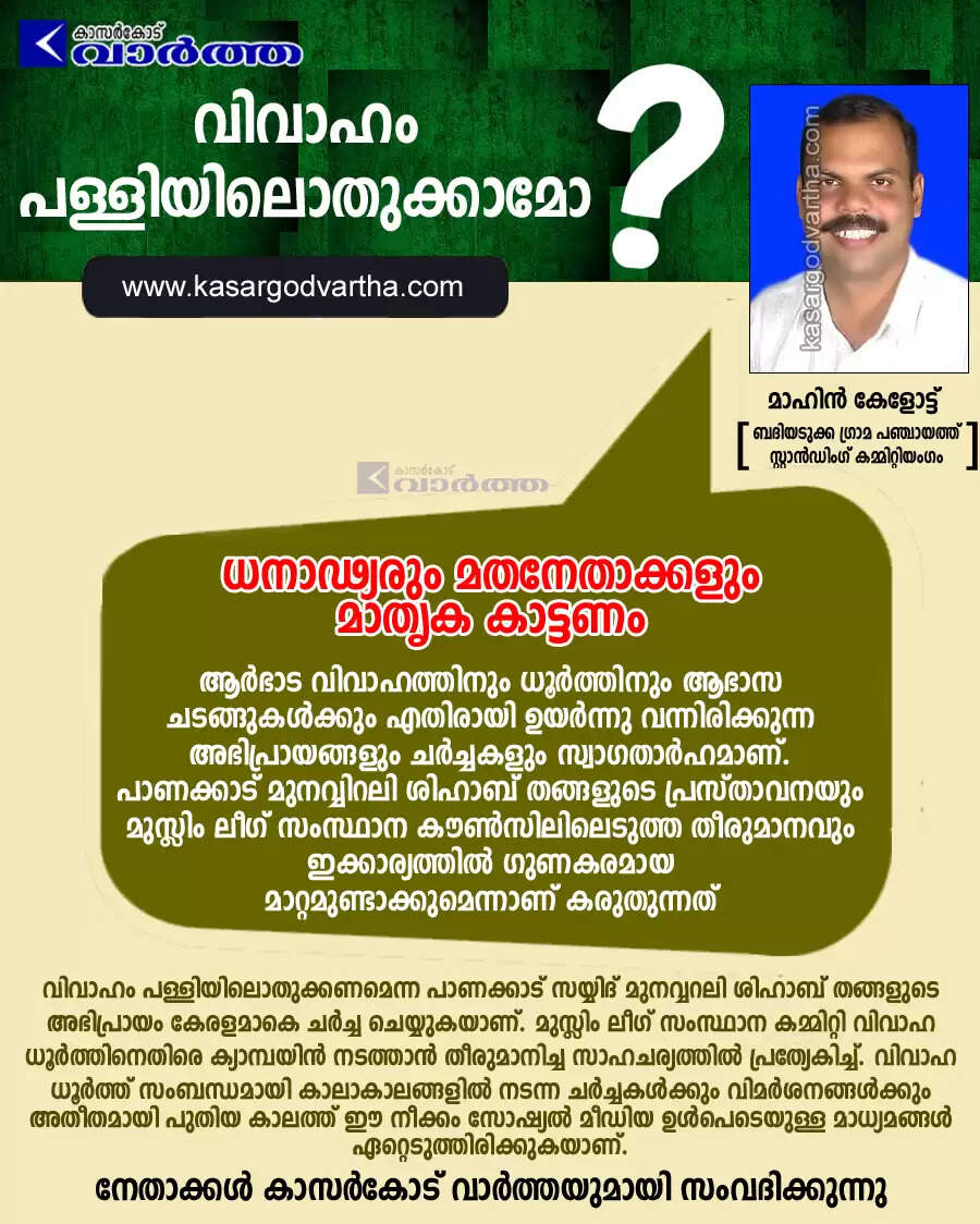 Keywords: Muslim-league, Marriage, IUML, MSF, MYL, Leader, Mahin Kelot, Kasargodvartha, Wedding: Anti extravagance campaign.