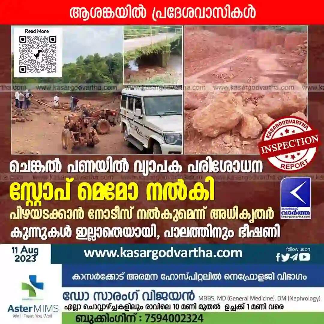 Quarry | ചെങ്കല് പണയില് വ്യാപക പരിശോധന; സ്റ്റോപ് മെമോ നല്കി; പിഴയടക്കാന് നോടീസ് നല്കുമെന്ന് അധികൃതര്; കുന്നുകള് ഇല്ലാതെയായി, പാലത്തിനും ഭീഷണി; ആശങ്കയില് പ്രദേശവാസികള്