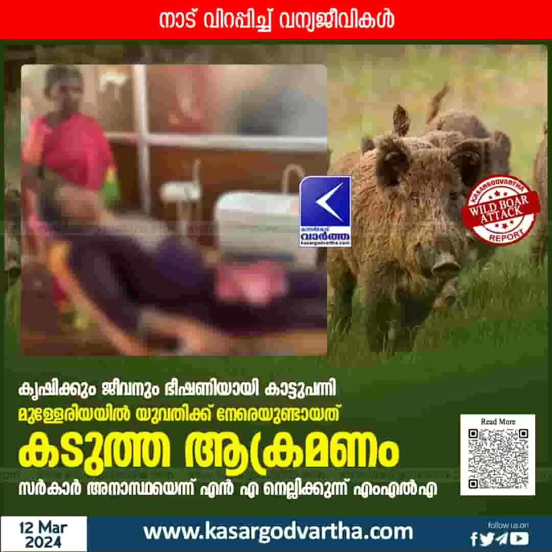 അതേസമയം കാട്ടുപന്നിയുടെ ആക്രമണത്തിൽ യുവതിക്ക് പരുക്കേറ്റ സംഭവം സർകാർ അനാസ്ഥയുടെ മറ്റൊരു ഉദാഹരണമാണെന്ന് എൻ എ നെല്ലിക്കുന്ന് എംഎൽഎ ആരോപിച്ചു. നാടെമ്പാടും രാത്രിയെന്നോ പകലെന്നോ വ്യത്യാസമില്ലാതെ വന്യമൃഗങ്ങൾ ജനങ്ങളുടെ ജീവൻ കൊണ്ട് പന്താടുമ്പോൾ അപകട സാധ്യതയുള്ള മേഖലകളിൽ സുരക്ഷാ സംവിധാനം ഏർപ്പെടുത്താത്തത് അപലപനീയമാണെന്ന് അദ്ദേഹം കൂട്ടിച്ചേർത്തു.