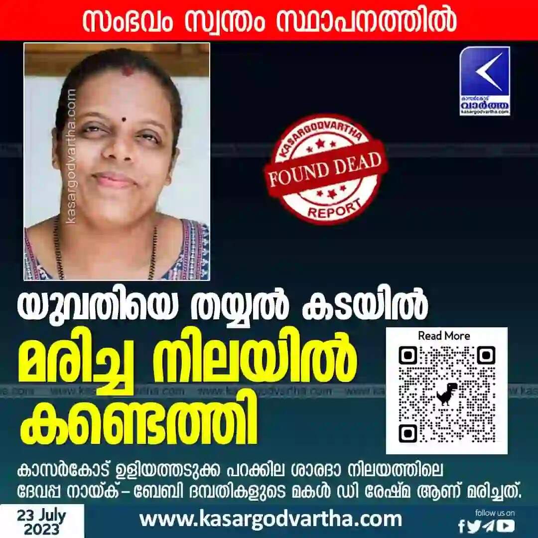 Keywords: Uliyathaduka News, Malayalam News, Obituary, Found Dead, Kerala News, Kasaragod News, Woman found dead in tailor shop.