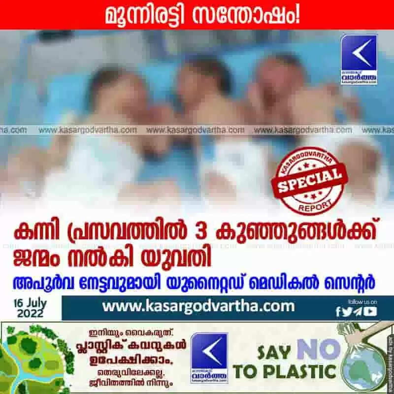 Keywords: News, Kerala, United Medical Centre, Kasaragod, Woman, Birthday, Childrens, Hospital, Doctors, Woman Gives Birth To 3 Children at Once.