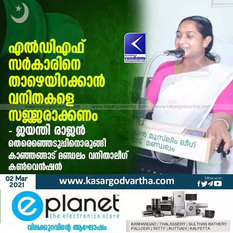 എൽഡിഎഫ് സർകാരിനെ താഴെയിറക്കാൻ വനിതകളെ സജ്ജരാക്കണം - ജയന്തി രാജൻ; തെരെഞ്ഞെടുപ്പിനൊരുങ്ങി കാഞ്ഞങ്ങാട് മണ്ഡലം വനിതാലീഗ് കൺവെൻഷൻ