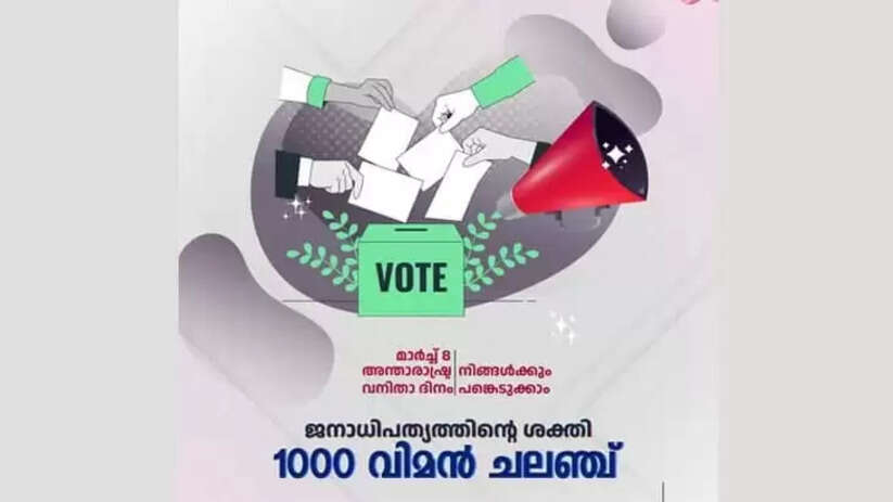 The Kerala State Election Commission has announced a selfie video challenge for women voters called "Democracy's Power 1000 Women Challenge" to celebrate International Women's Day. Women are encouraged to upload a short video (under 5 seconds) saying "I will definitely vote, what about you?" by February 25th.
