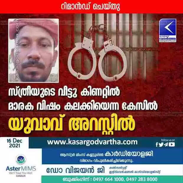 സ്ത്രീയുടെ വീട്ടു കിണറ്റിൽ മാരക വിഷം കലക്കിയെന്ന കേസിൽ യുവാവ് അറസ്റ്റിൽ